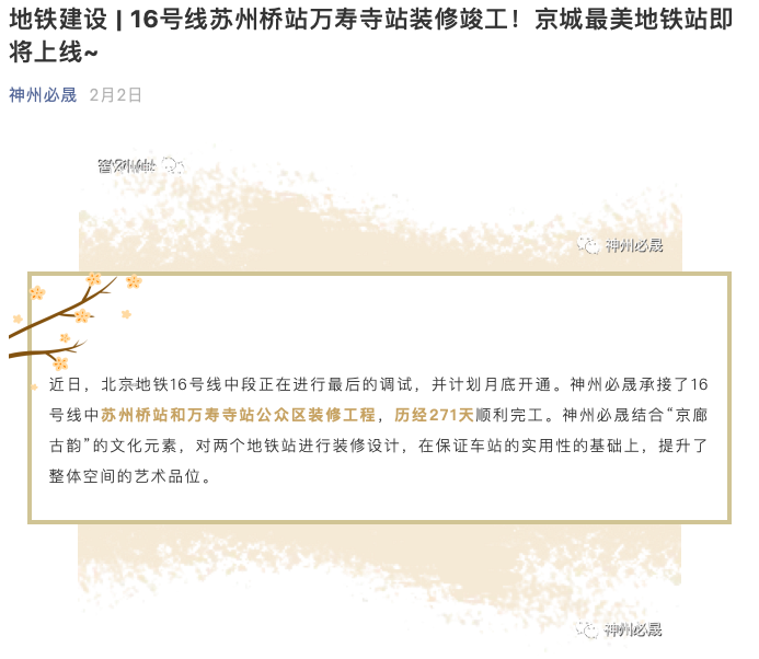 地鐵建設(shè) | 16號(hào)線(xiàn)蘇州橋站萬(wàn)壽寺站裝修竣工! 時(shí)間 :2021-02-26 22:25點(diǎn)擊 :1834 上一篇:校園文化 | 書(shū)香墨韻環(huán)境,學(xué)生樂(lè)享校園生活 下一篇:神州必晟喜迎牛年!2020感恩相伴,2021再創(chuàng)佳績(jī)!